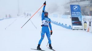 Tommaso Giacomel festeggia la vittoria a Oberhof in Germania il 10 gennaio 2026 (fonte: heute.at)